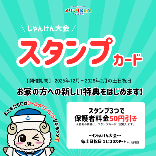 メリッタKid’s SASEBOで開催しているじゃんけん大会において、お家の方対象の新しい特典『スタンプカード』をはじめます!