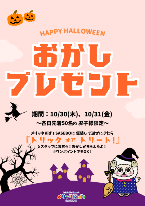 10/30(木)、10/31(金)にハロウィンイベント、『ハロウィンおかしプレゼント』を開催します。