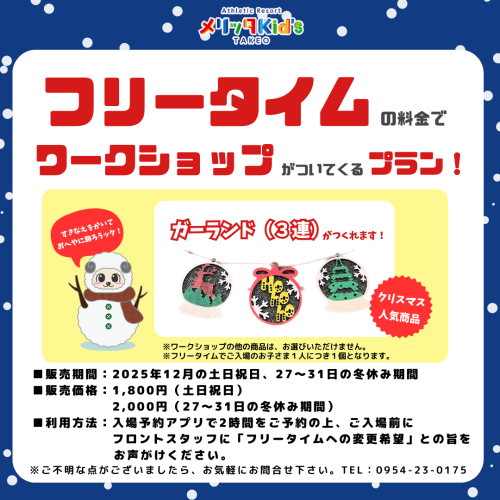 題して【フリータイムの料金でワークショップがついてくる!】