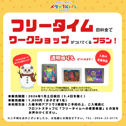 題して【フリータイムの料金でワークショップがついてくる!】