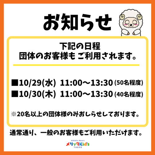 いつもメリッタKid’s TAKEOをご利用いただきまして誠にありがとうございます。