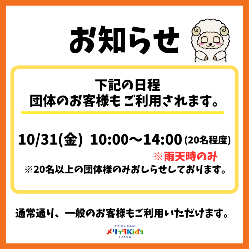 いつもメリッタKid’s TAKEOをご利用いただきまして誠にありがとうございます。