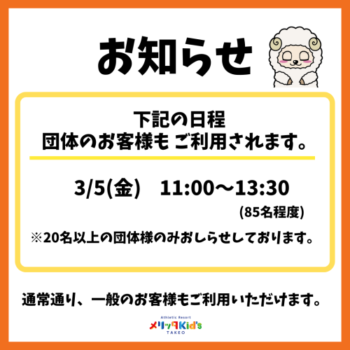 いつもメリッタKid’s TAKEOをご利用いただきまして誠にありがとうございます。