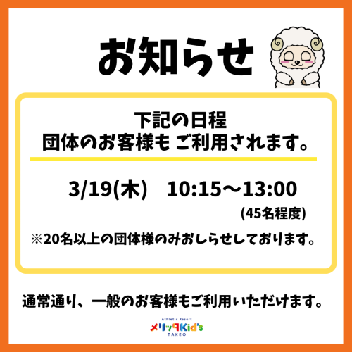 いつもメリッタKid’s TAKEOをご利用いただきまして誠にありがとうございます。