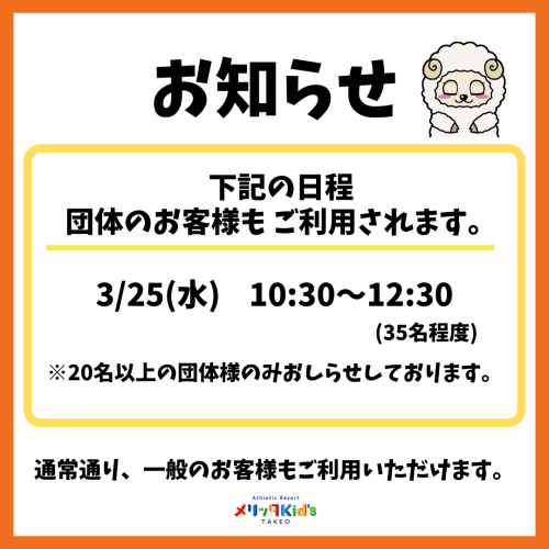いつもメリッタKid’s TAKEOをご利用いただきまして誠にありがとうございます。