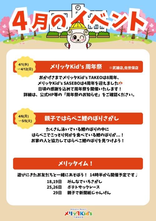 おかげさまでメリッタKid’s TAKEOは8周年、メリッタKid’s SASEBOは4周年を迎えました🎊